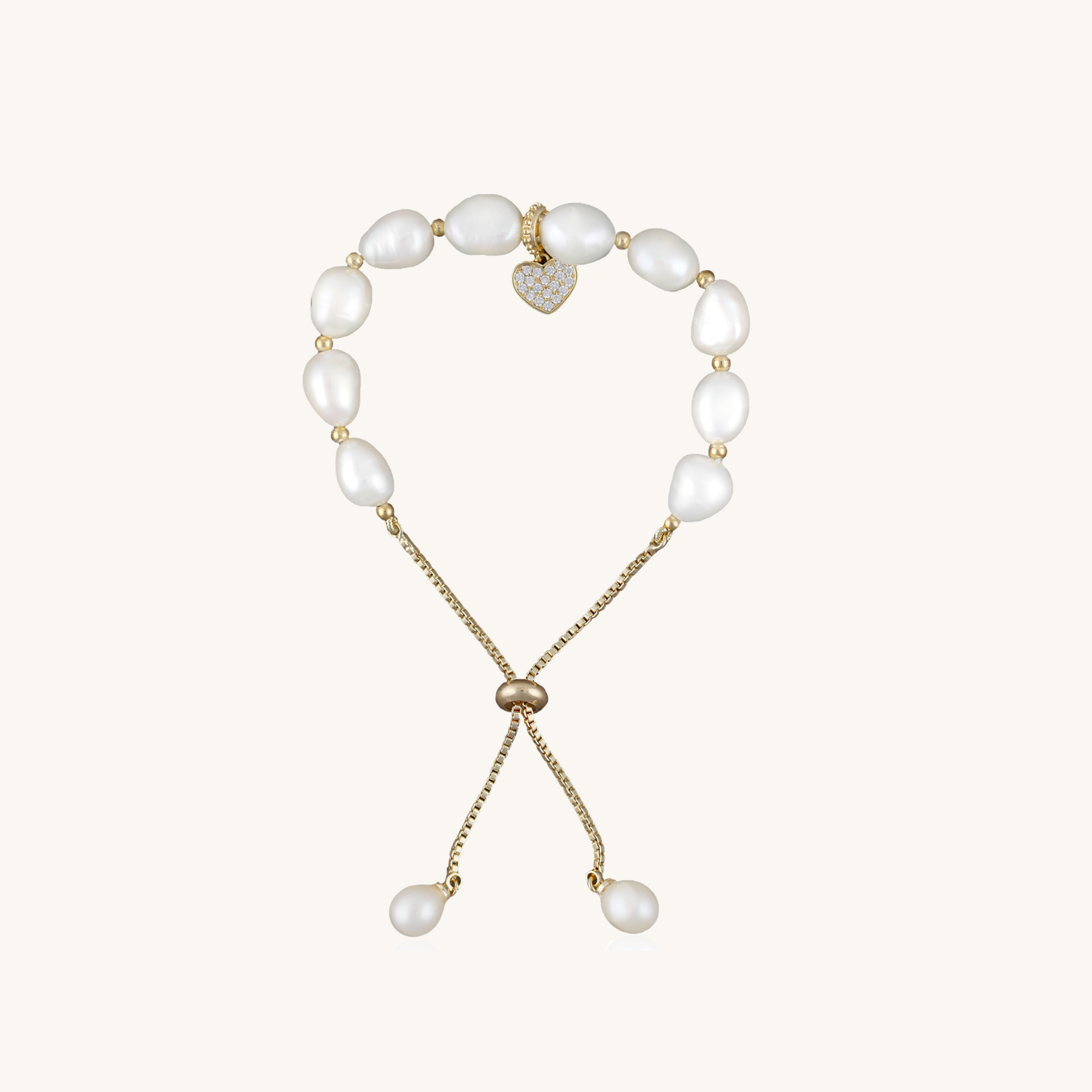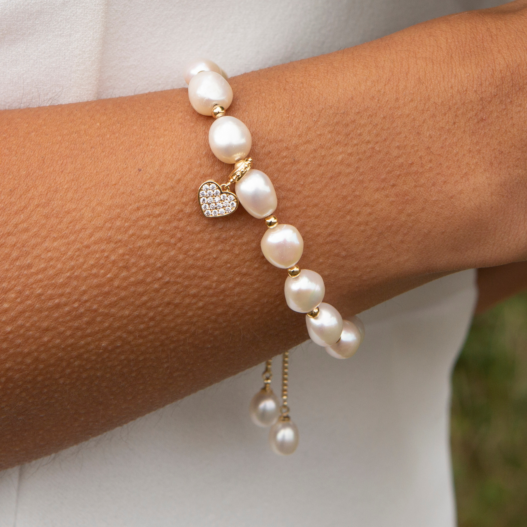 Freshwater Pearl Bracelet With Baroque 14K Gold Charm - L'Amour Pearls