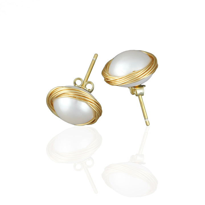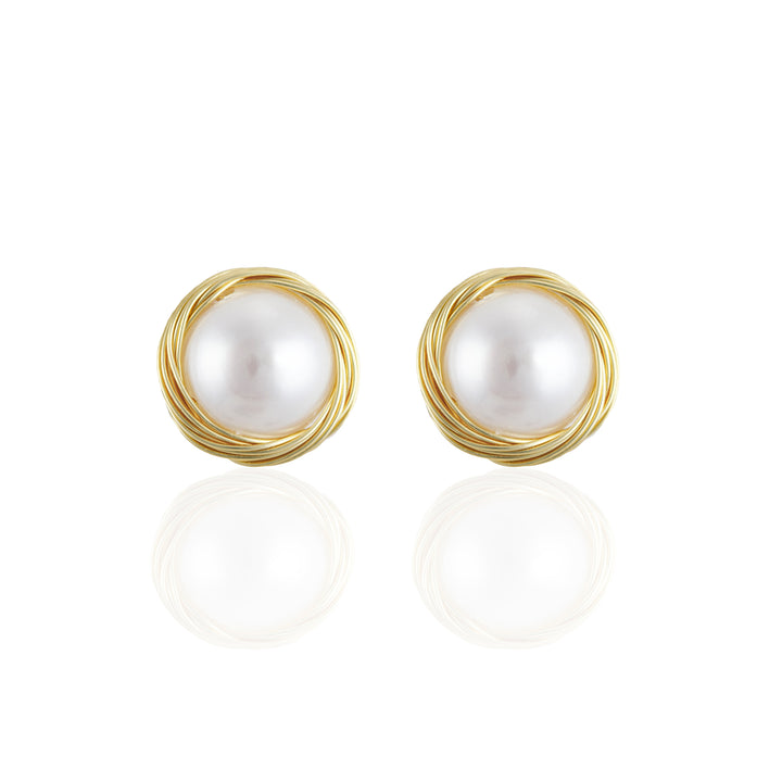 Adorn your ears with these stunning pearl earrings, featuring gold-finished woven wire settings. The warm gold tones perfectly complement the lustrous pearls, making them a versatile accessory for any outfit.