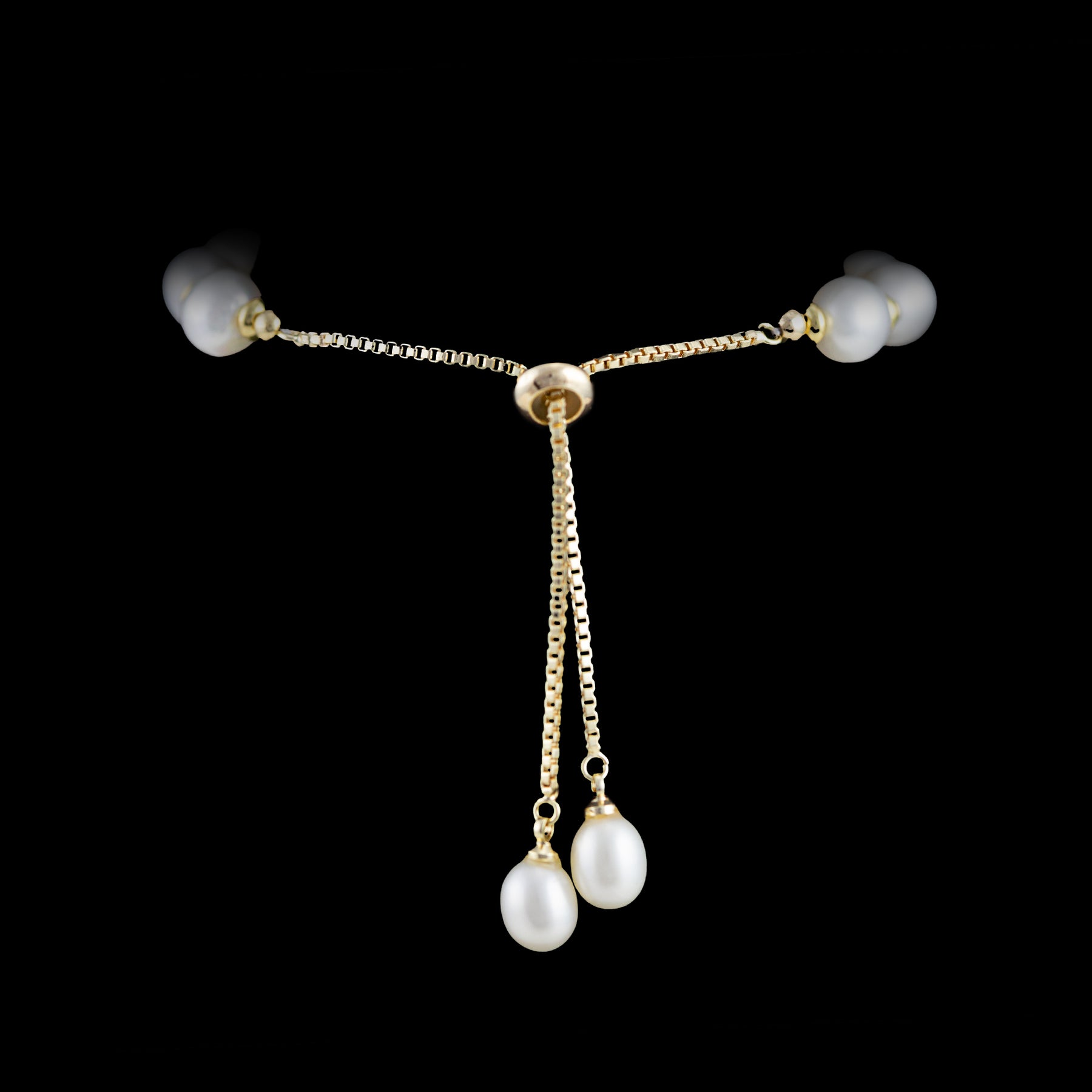 Freshwater Adjustable Pearl Bracelet in 14K Gold with Gemstone Charms - L'Amour Pearls