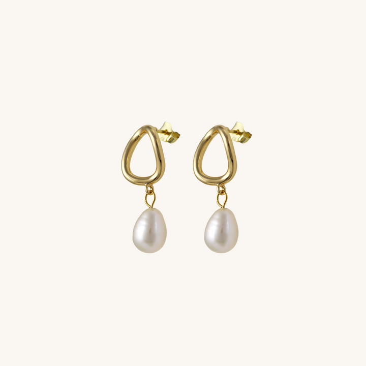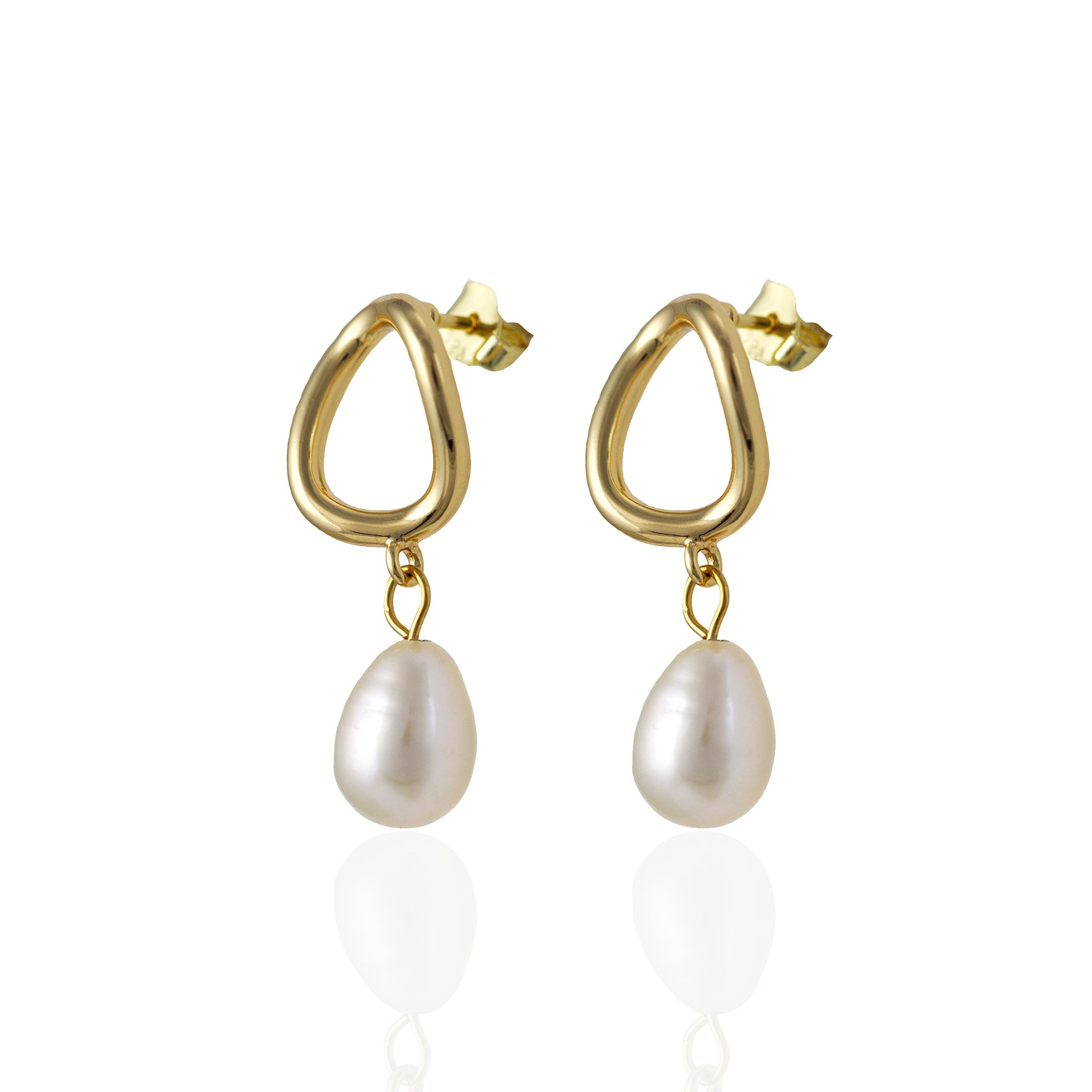 Our favorite for discreet formal occasions. A contemporary teardrop design featuring a large freshwater pearl suspended from a 14K gold finished loop with stud.