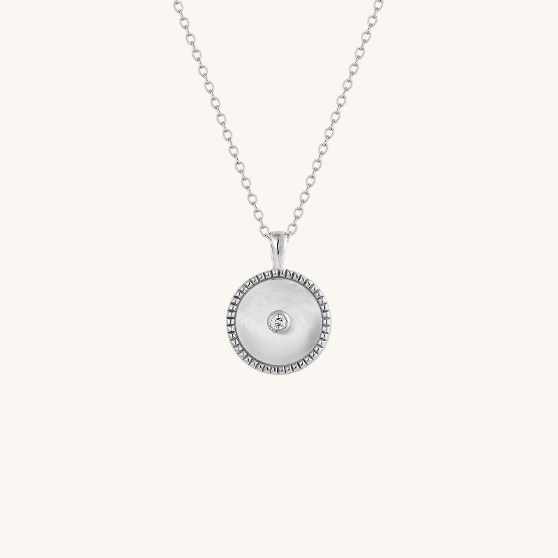 White Freshwater Pearl Halo Pendant with Sterling Silver Chain