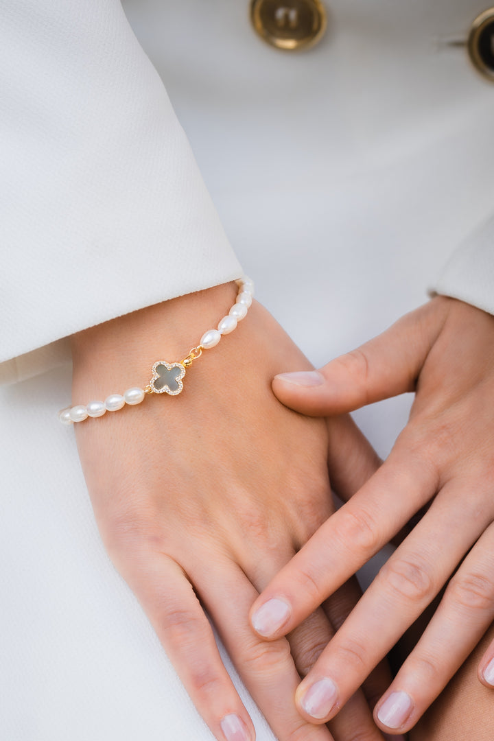 Metal: Metal: 925 Silver/14K gold vermeil/ Mother of Pearls Four Leaf Clover Clasp